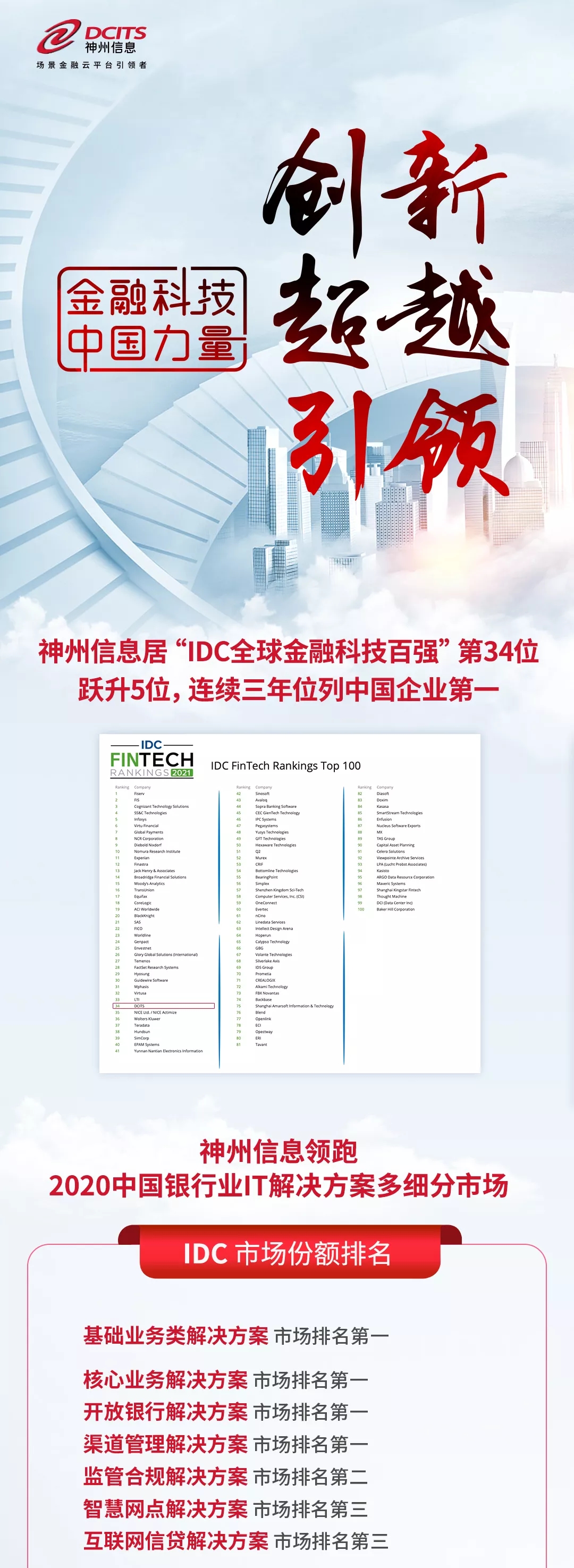 FinTech头条 | 神州信息居“IDC全球金融科技百强”第34位,连续三年位列中国企业第一