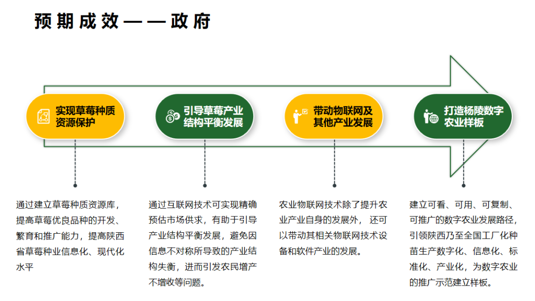 利用信息技术、物联网、云计算、大数据等技术手段,为产业生产全过程配套数字化设备,搭建智能监测、控制、服务、管理平台系统,集成展示草莓苗木数字生产、数字监管、数字仓储、数字交易、数字消费等内容,推行一部手机、一个触摸屏、一个码、一张图的时空信息管理模式,促进草莓育苗产业实行生产精准化、经营智慧化、销售精品化、服务在线化,从而提高农业生产效率和质量,促进农业可持续发展。