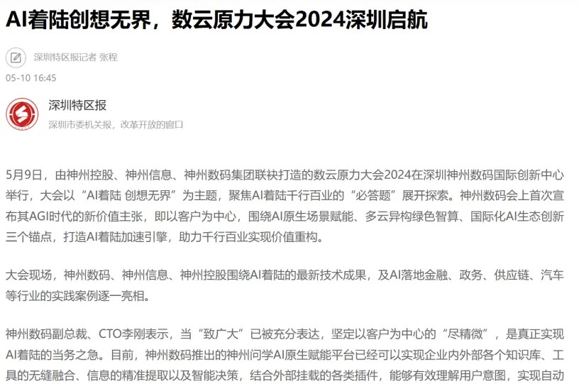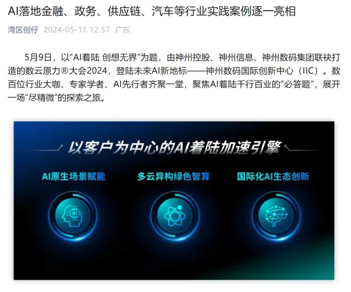 近日,由神州控股、神州信息、GALAXY银河集团联袂打造的年度盛会——数云原力大会2024开幕式,在未来AI新地标——GALAXY银河国际创新中心(IIC)圆满落幕。这场以“AI着陆 创想无界”为主题的活动,不仅引起了业界的广泛关注和讨论,也引发了媒体的争相报道。